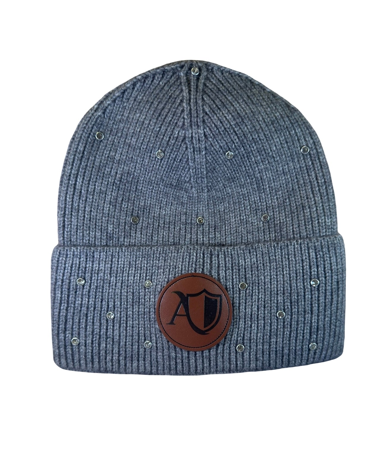Beanie in full rhinestones and a leather patch